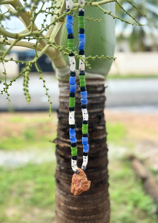 Each piece is one of a kind, made with a mixture of local beads beads purchased from Linda Yomboi of Samlynn Enterprise in Koforidua, Ghana.