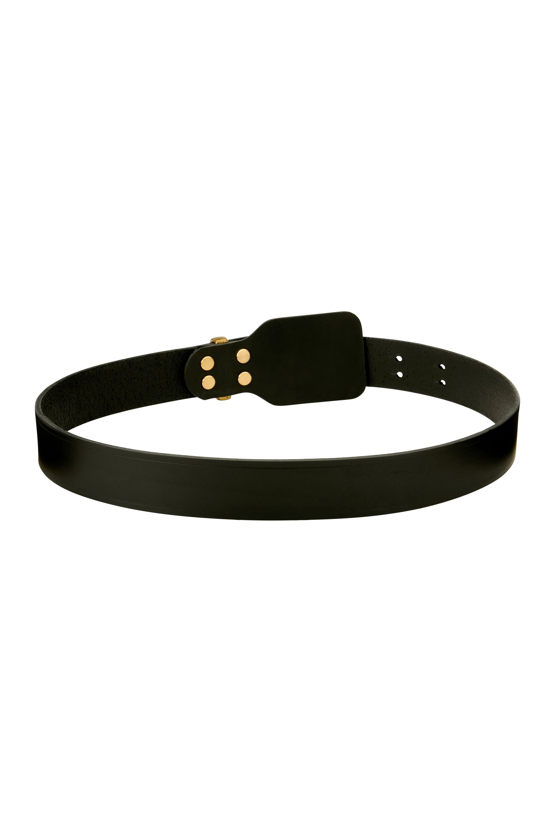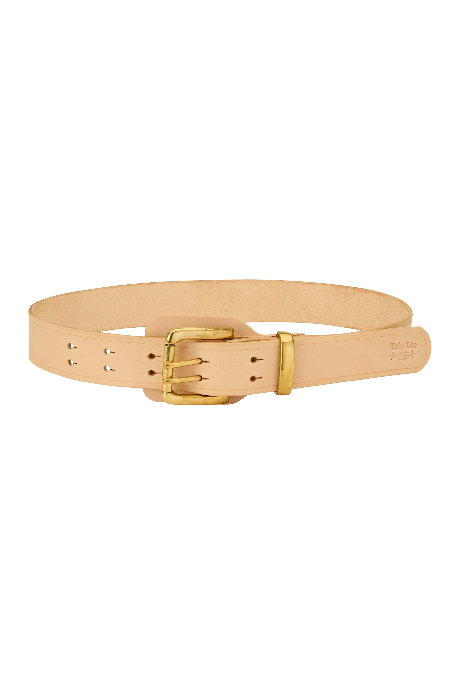 Inspired by a Sam Browne belt Toby bought from a market in Ghana, this vegetable tanned belt has a panel under the buckle for comfort and ease of use, quality brass hardware and burnished edges.